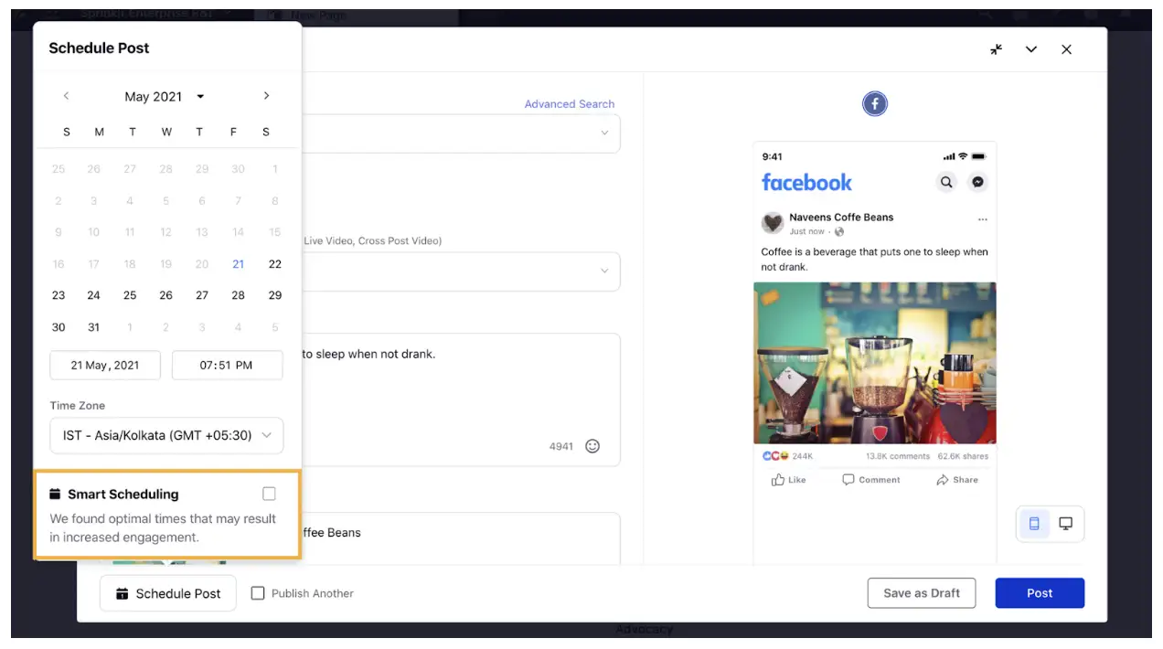Pro Tip: Timing matters! Posting when your audience is most active can dramatically boost reach. However, manually managing the timing of multiple posts is inefficient. With tools like Sprinklr Smart Scheduling, you can automatically select the optimal time to publish your reposts based on past engagement patterns and platform algorithms. This ensures your content goes live when it’s most likely to perform well, without requiring constant monitoring.