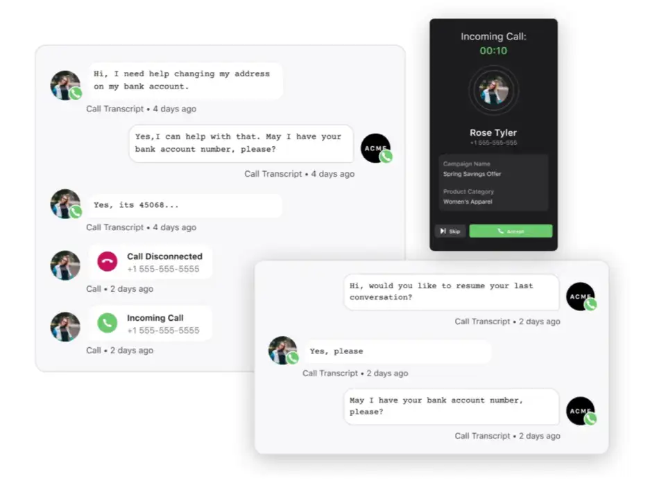 - Eliminate repeat calls with full context memory: Forget the days of customers repeating their issues over and over. Sprinklr keeps a complete record of every interaction, so customers can pick up where they left off — whether they’re transferred to an agent or reconnect later.