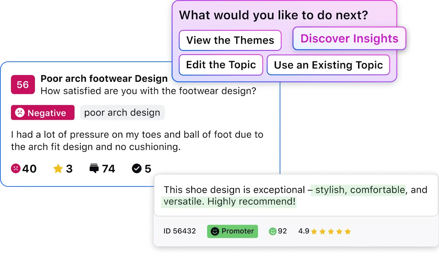 Pinpoint precise areas where your customers face friction by analyzing VoC data, such as surveys, in-app feedback, and behavioral analytics.