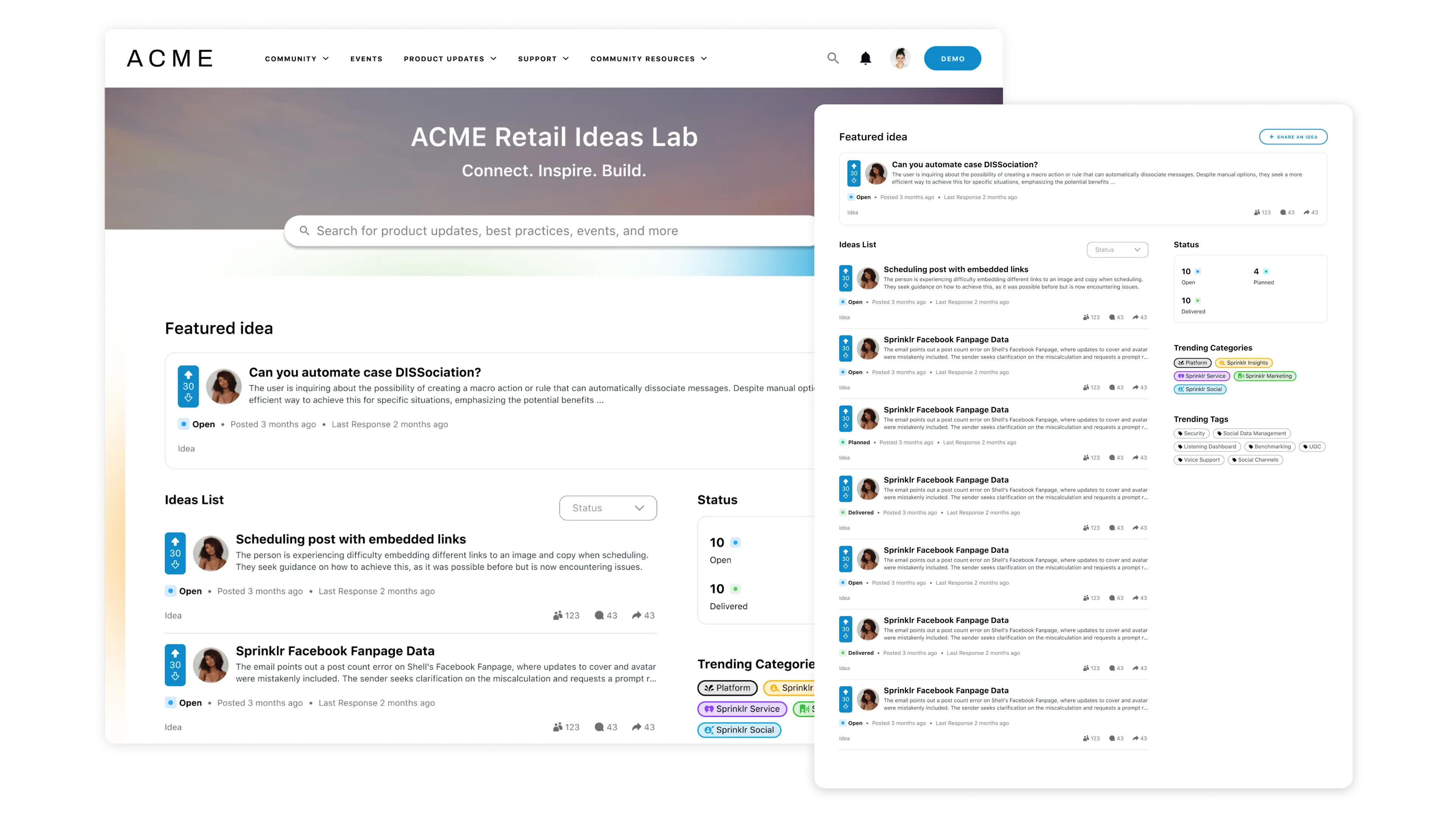 Allow members to give feedback on brand offerings and services. Gauge members' interests, prioritize work based on suggestions, and transparently showcase which pieces of feedback are being implemented, keeping members informed about their contributions.