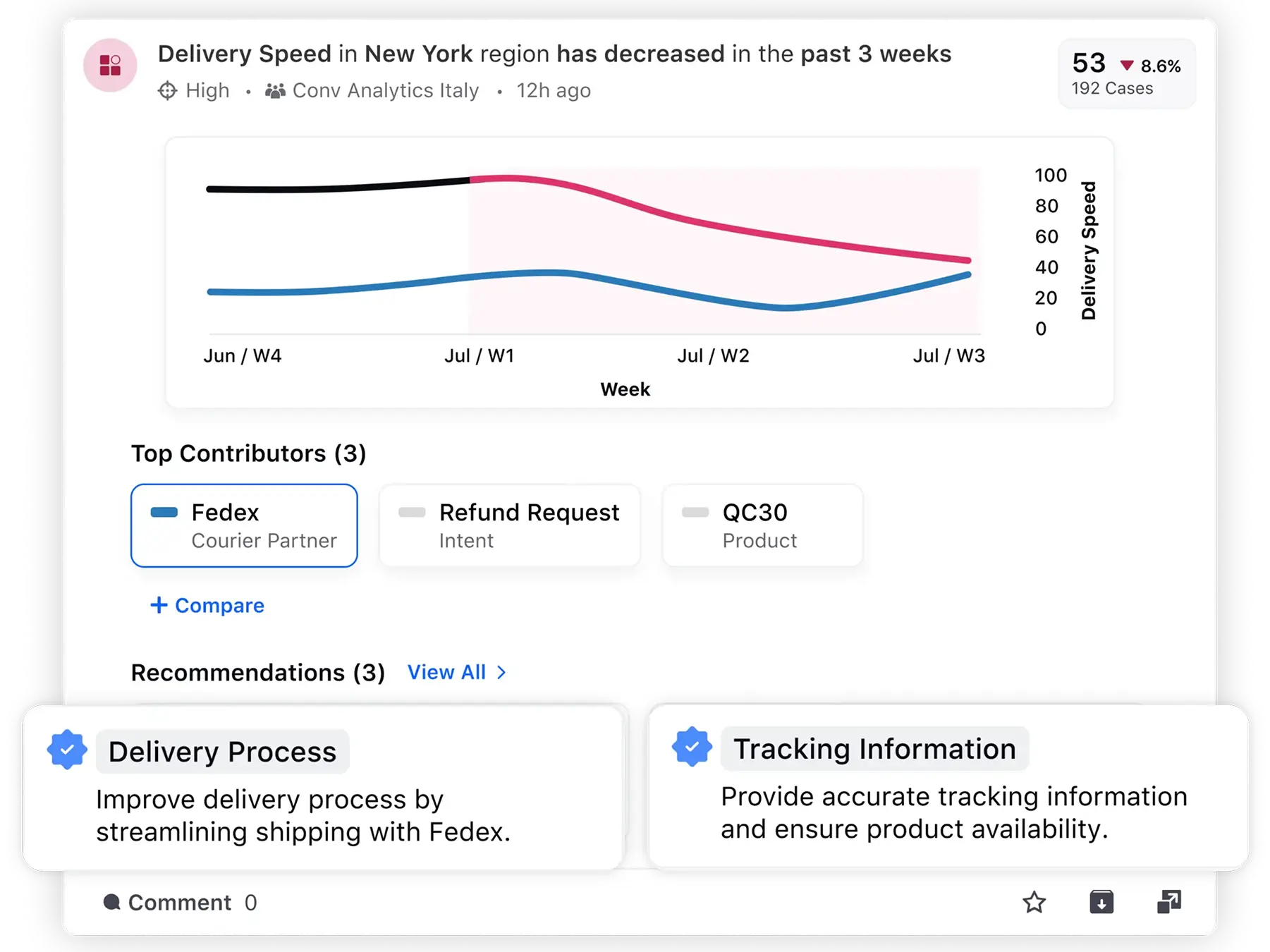 Uncover intelligence from 100% of customer conversations across text and voice. Identify unknown contact drivers, root causes, and get fully automated recommendations for next-best actions.