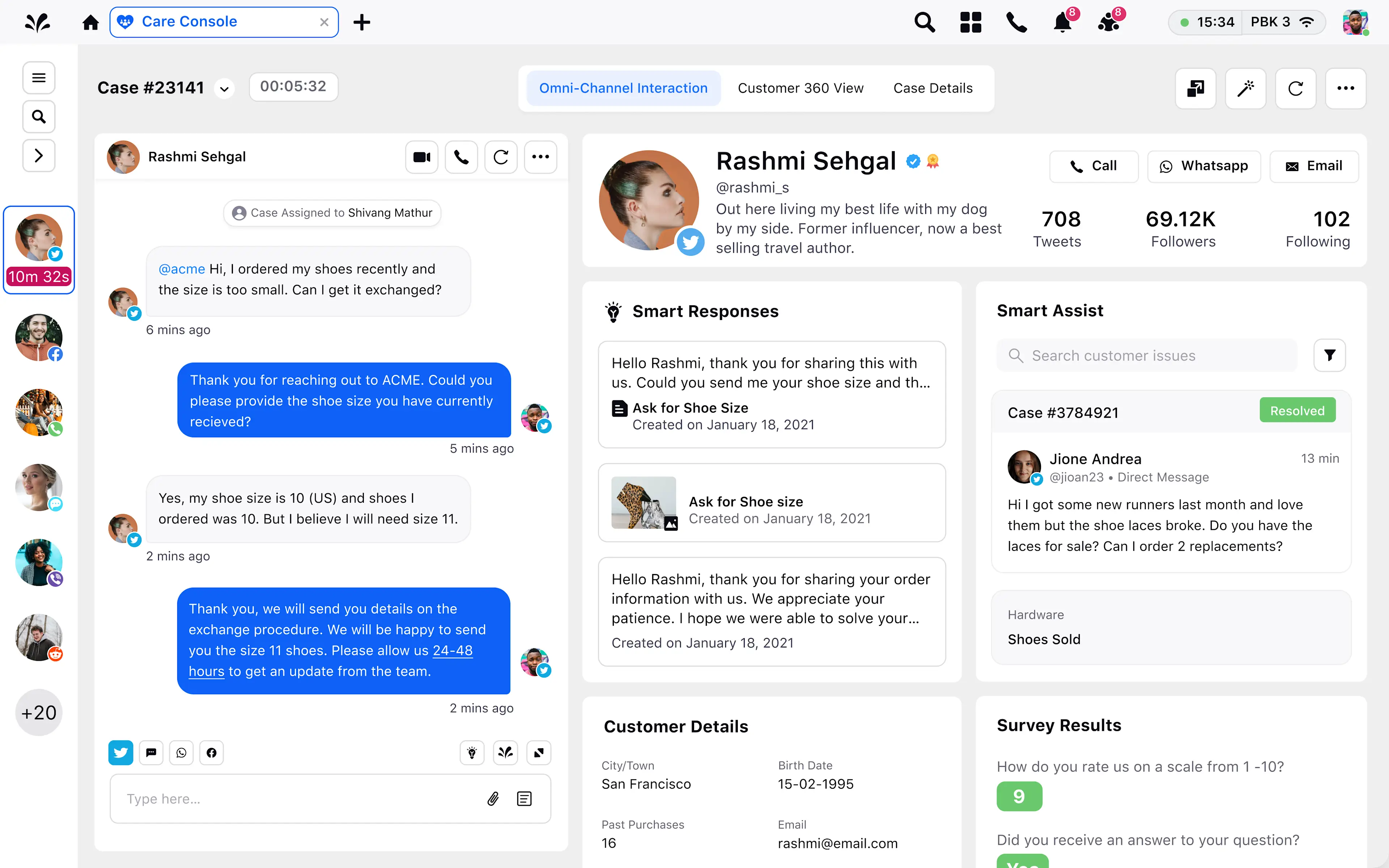 - Personal assistance at every step: Agent Assist helps carry conversations with features like Smart Responses, Guided Workflows and Nudges