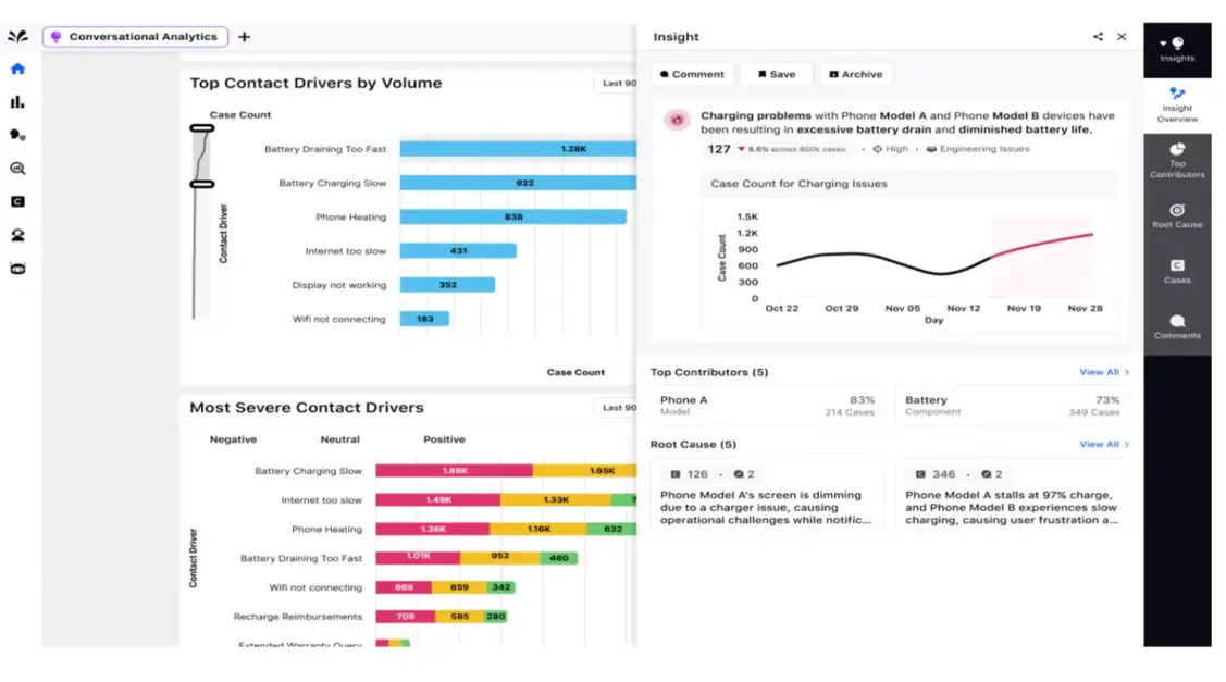Advanced platforms like Sprinklr’s conversational analytics go beyond identifying broad contact drivers. They help pinpoint root causes, surface detailed attributes behind customer issues and even recommend targeted actions to maximize impact with minimal effort.