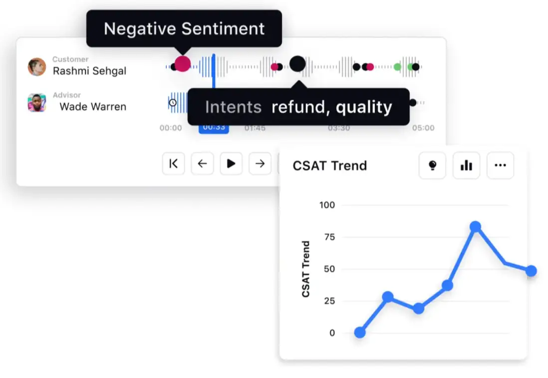 - Shift from reactive to proactive: Monitor customer sentiment in real-time and trigger automated interventions at the first sign of friction before it impacts customer satisfaction or loyalty.