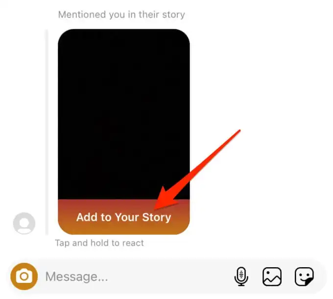 2. Open the direct message: You’ll see a preview of the story you’ve been tagged in.