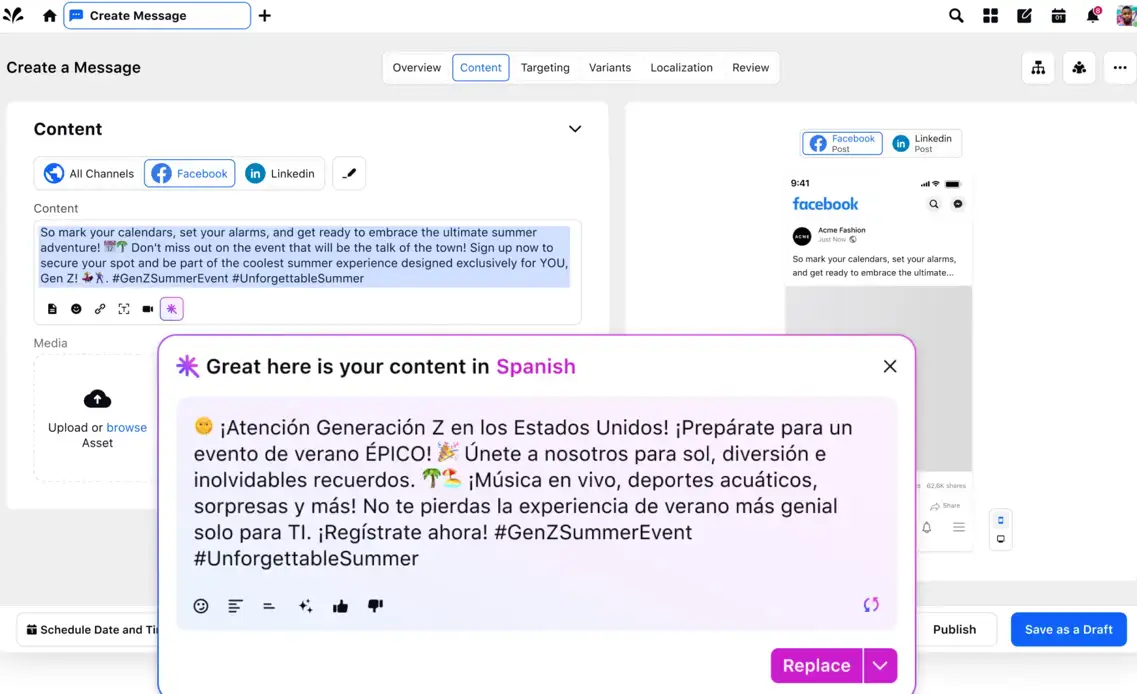 Sprinklr’s AI-powered scheduler does more than set and forget — it finds the best times to post, ensures brand compliance, and makes collaboration seamless. Oh, and it works across 30+ channels — so you don’t have to.