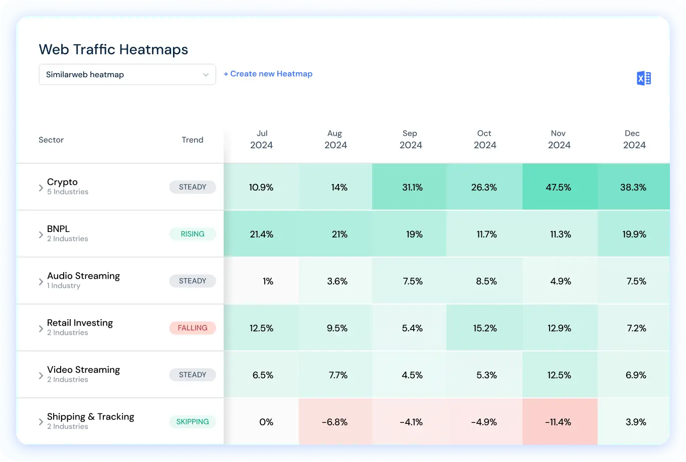SimilarWeb is a digital intelligence platform designed to give businesses a clear view of how their markets and competitors perform online. The platform spans 190 countries and 210 industries, offering a global dataset for market analysis and competitive benchmarking. Users can access market insights and consumer trends on demand and react quickly to shifts in industry performance, geographic activity or marketing spend.
