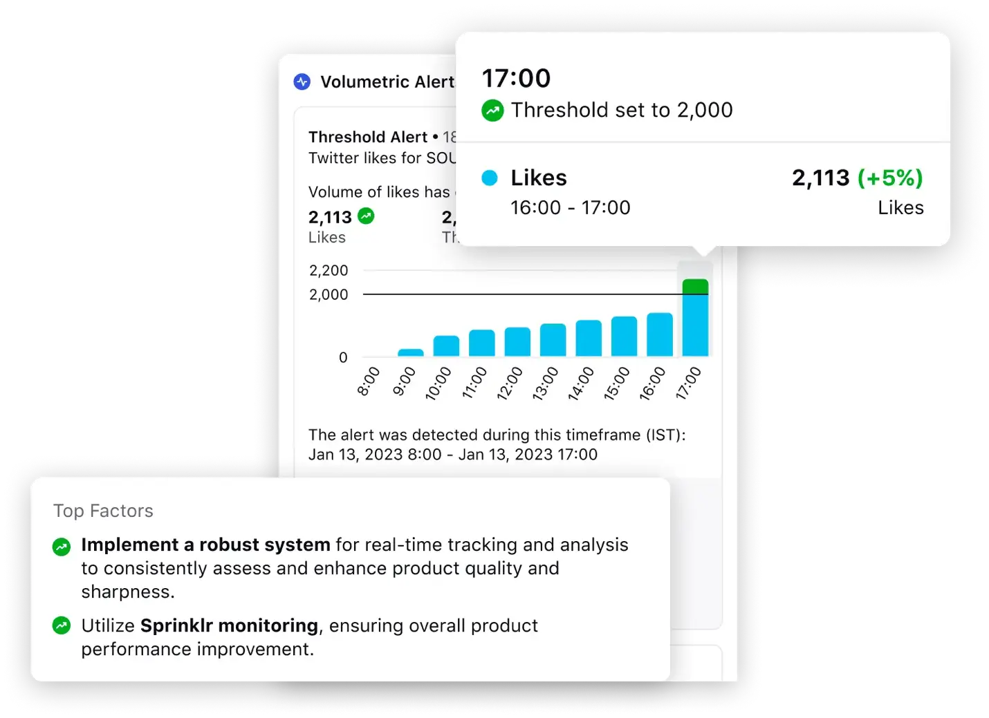 Sprinklr analyzes anomalies in conversation volume and tone. If an unexpected surge of criticism appears, or if praise suddenly spikes, the system alerts teams instantly, giving them a chance to act before reputational stakes rise.