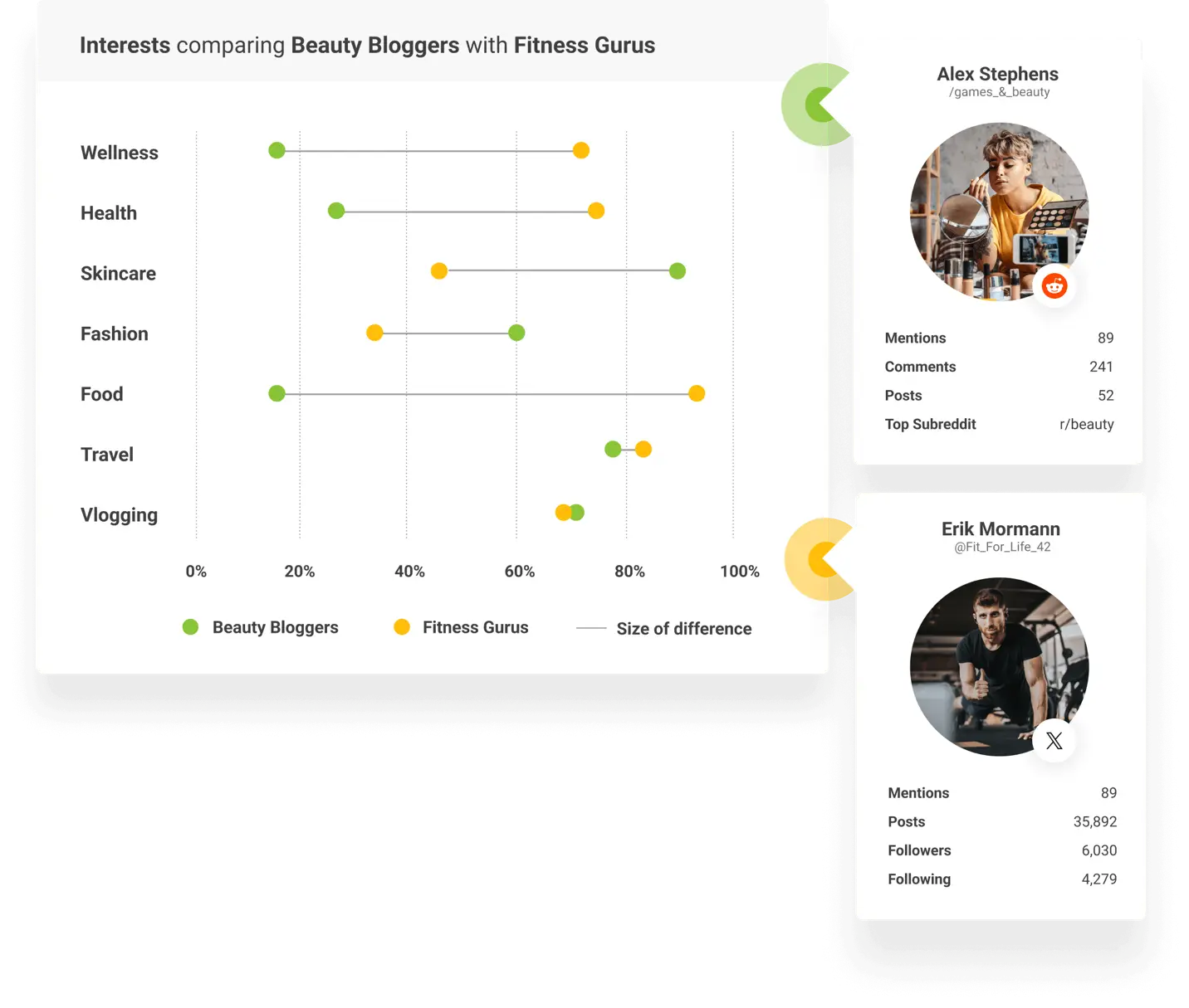 - Influencer mapping: Identifies influencers with genuine reach and engaged audiences, avoiding false signals from inflated follower counts.