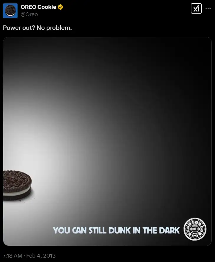 Research shows that 71% of consumers are likely to recommend a brand after a positive social media experience, highlighting the power of these interactions. A perfect example is Oreo’s iconic 2013 Super Bowl tweet during the blackout, which turned a spontaneous moment into a viral marketing success. That creative decision generated millions of earned media impressions and made headlines globally. In retrospect it also highlights how a creative, timely response can skyrocket a brand’s visibility.