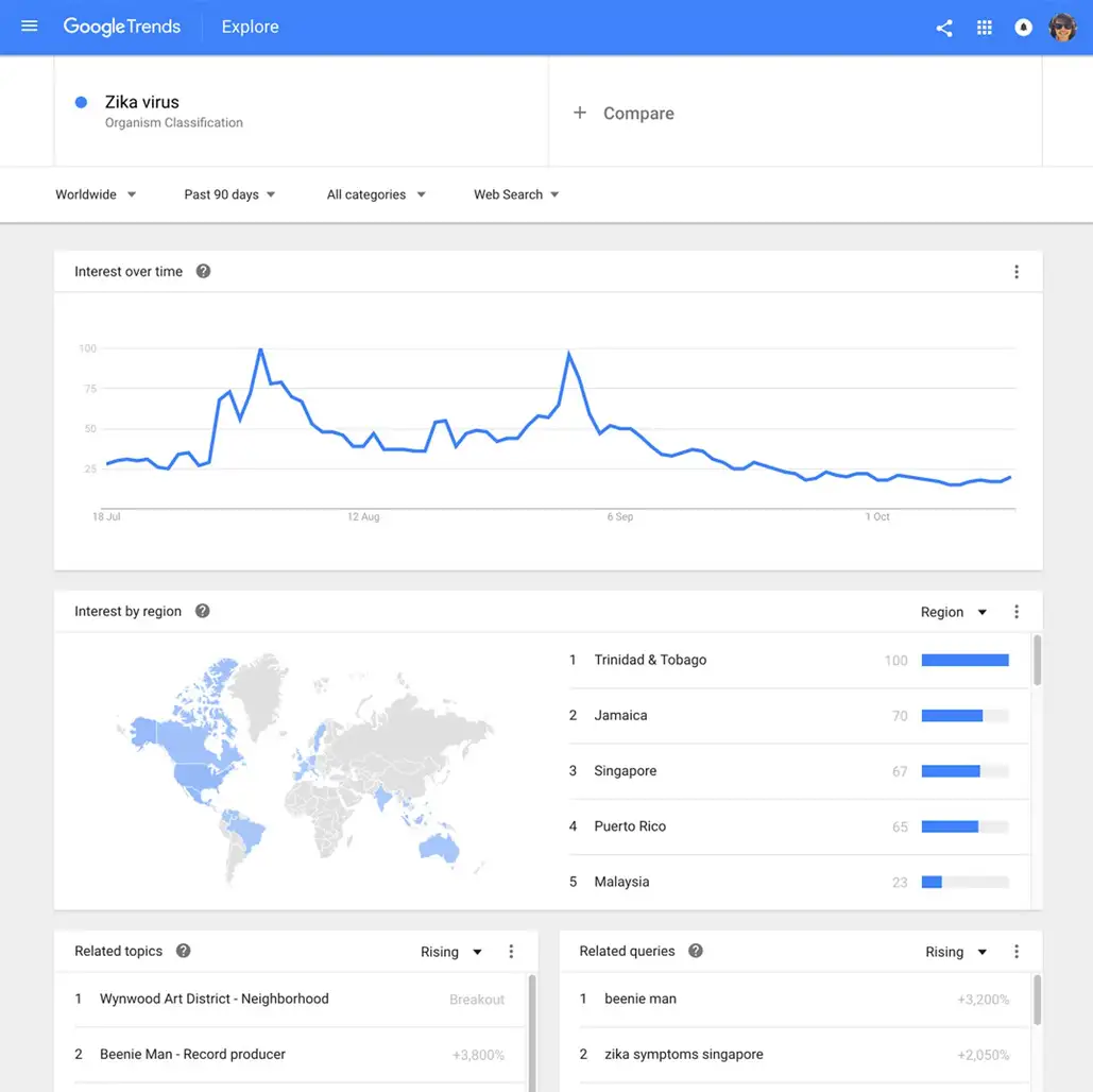 A cool Google Trends hack: While Google Trends doesn't provide absolute search volumes, pairing it with Google Keyword Planner gives you both relative interest (from Trends) and absolute volume numbers (from keyword tools).