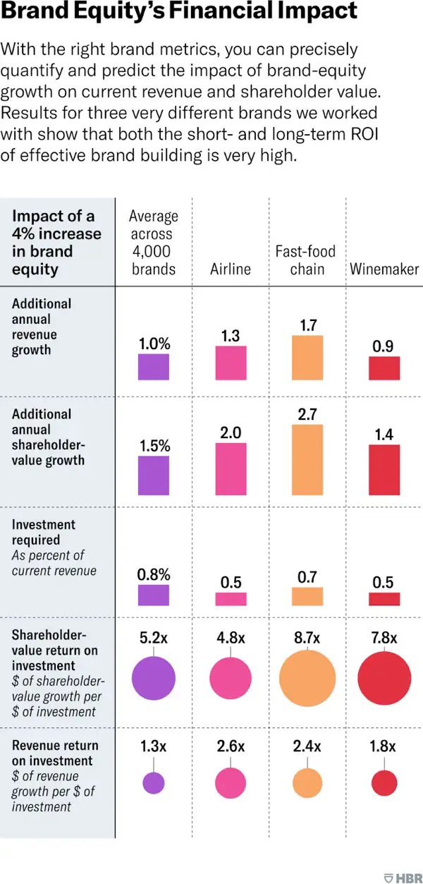 These organic conversations create valuable touchpoints that reinforce brand recognition and recall. Each mention essentially functions as a free brand impression that carries added credibility since it comes from peers rather than paid advertising. According to a Harvard Business Review research, companies that improved brand equity by a mere 4% saw a 1.3x return on investment (ROI).