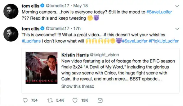 Here’s another example, this time an X thread, where fans are perpetuating the #SaveLucifer hashtag 👇