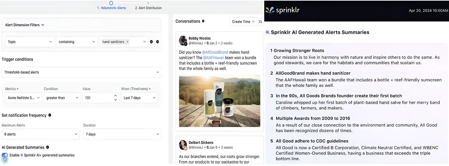 → Sprinklr AI+ powered Alerts Summarizer instantly summarizes the posts triggering alerts — giving your teams a clear, concise read on what’s happening and why, without digging through endless mentions.