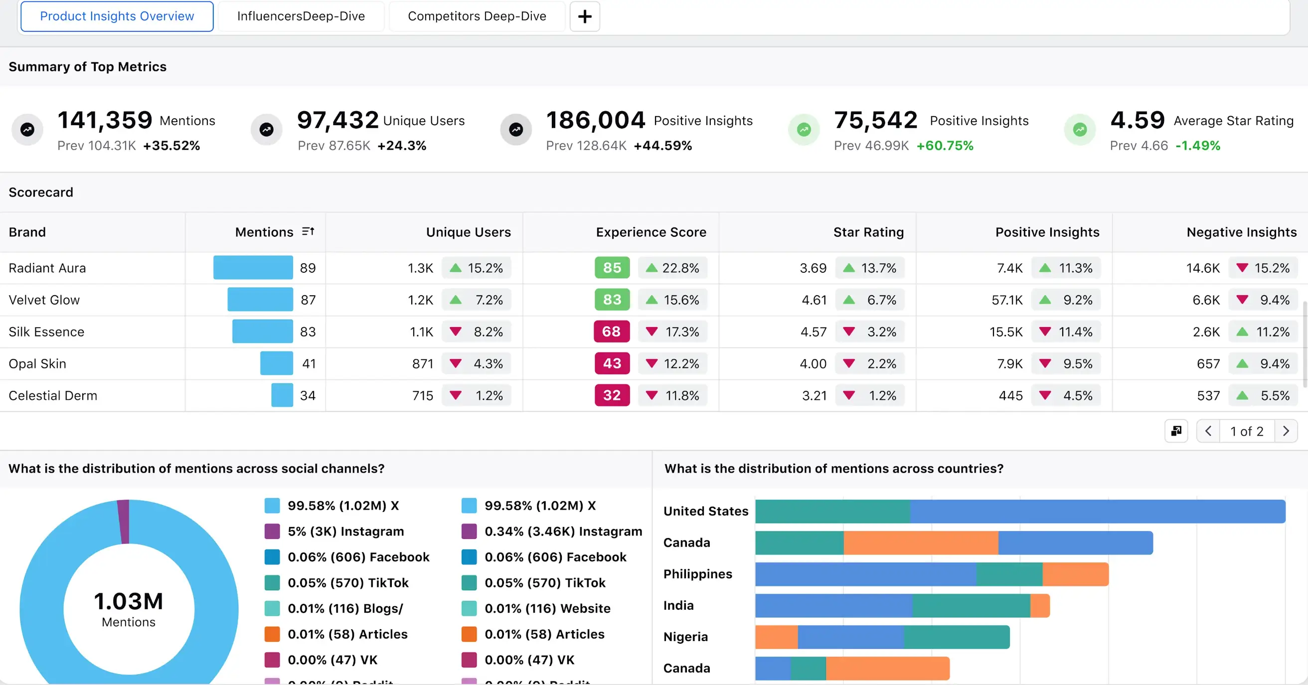 Track engagement, reach, sentiment, executive mentions, influencer impact and share of voice — with out-of-the-box dashboards that highlight where you lead or lag.