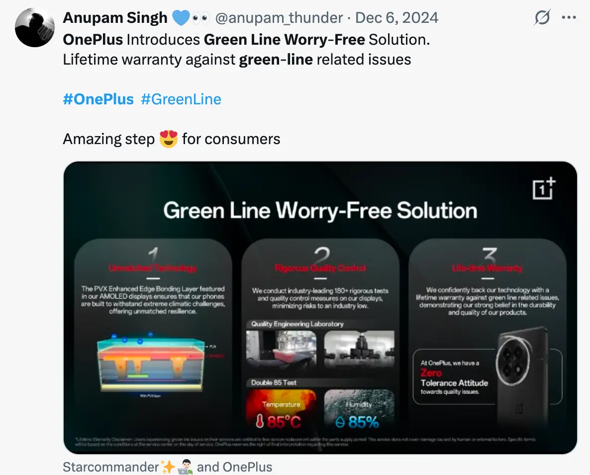 Recognizing the gravity of the situation, OnePlus used VoC to listen to its customers and introduced the "Green Line Worry-Free Solution", a lifetime screen warranty. This strategic move helped restore customer trust and loyalty.