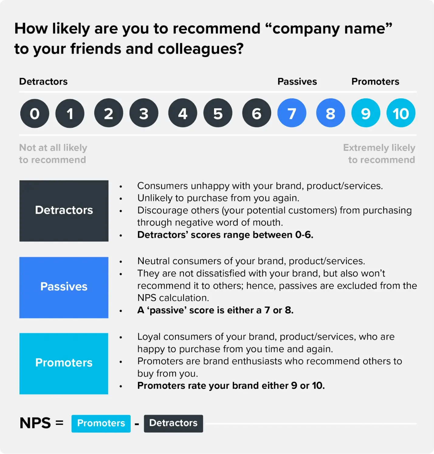 Net promoter score (NPS) measures customer loyalty by asking one simple question: “How likely are you to recommend us?”
