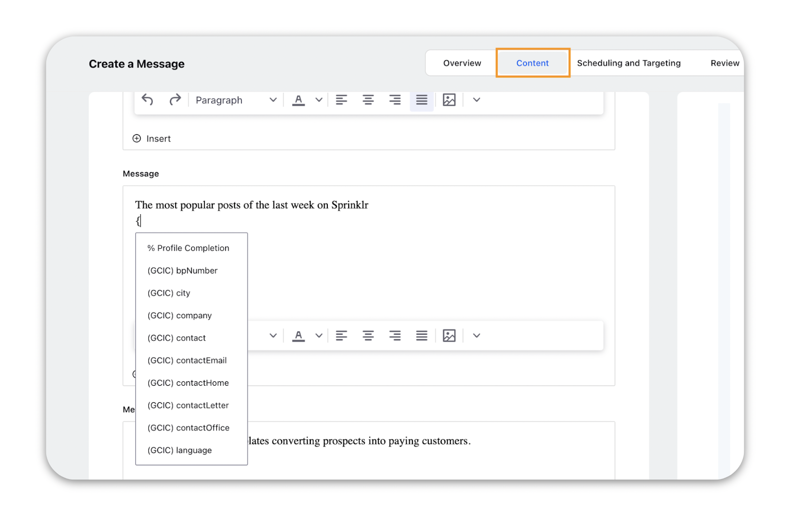 Note: While sending out any Email Marketing message with personalization, make sure that the custom field that you are using to personalize should be populated on that audience profile or the message won’t go through.