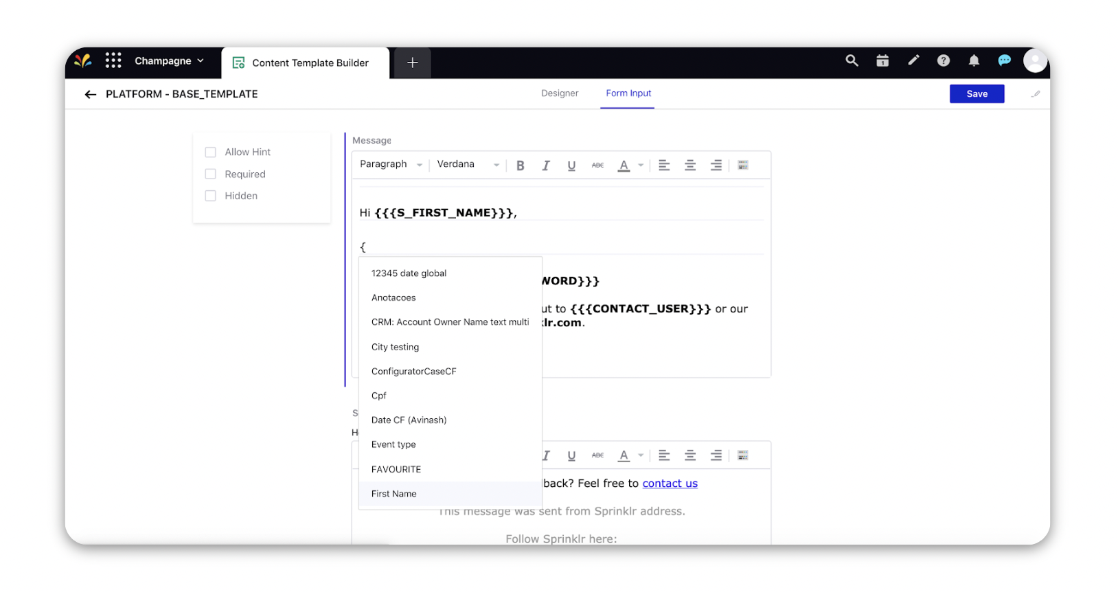8. You can also add personalisation in the similar way as above through the Content section of the Advanced Publisher.